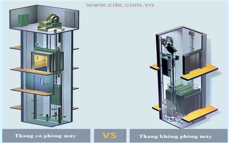 PHÂN BIỆT GIỮA THANG MÁY CÓ PHÒNG MÁY  VÀ THANG MÁY KHÔNG PHÒNG MÁY