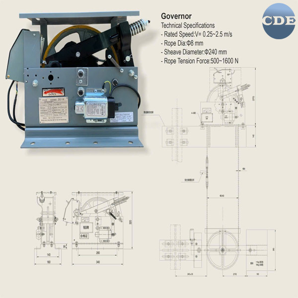 Govenor trên - Bộ hãm phanh chống cabin rơi tự do - Bộ hạn chế tốc độ: