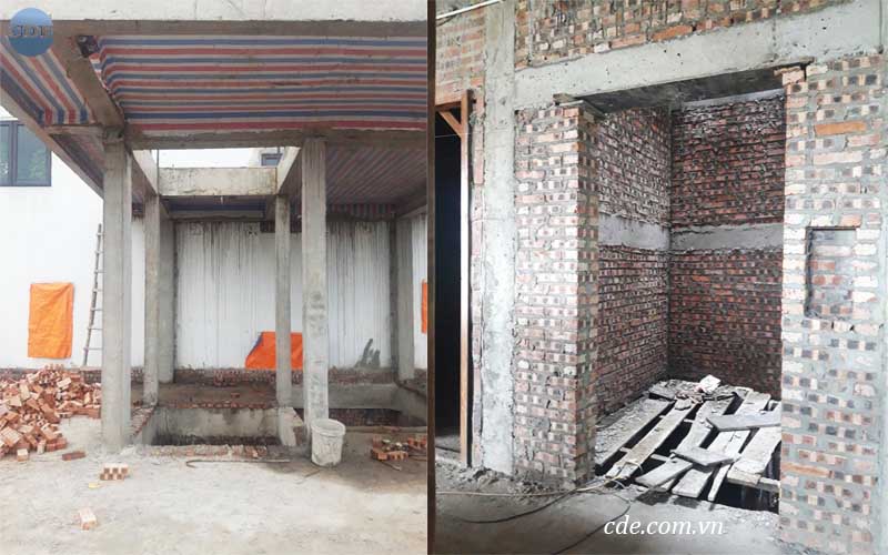 Khung hố trụ bê tông, tường gạch